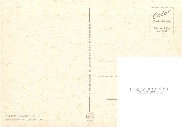 73040777 Bad Homburg Schlossweiher Weisse Turm postalisch nicht gelaufen Erhaltung siehe scans [NatalD47] KatCode: 11110006434001
