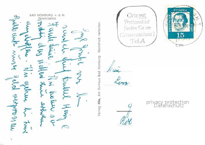 72790549 alte Postkarte Bad Homburg Spielcasino postalisch gelaufen Erhaltung siehe scans [LiesaD40] KatCode: 11110006434001