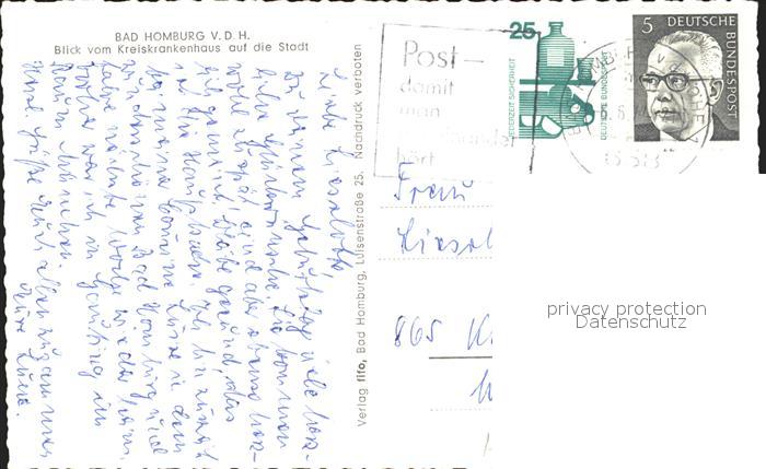 72097103 alte Postkarte Bad Homburg Stadtblick vom Kreiskrankenhaus postalisch gelaufen Erhaltung siehe scans KatCode: 11110006434001
