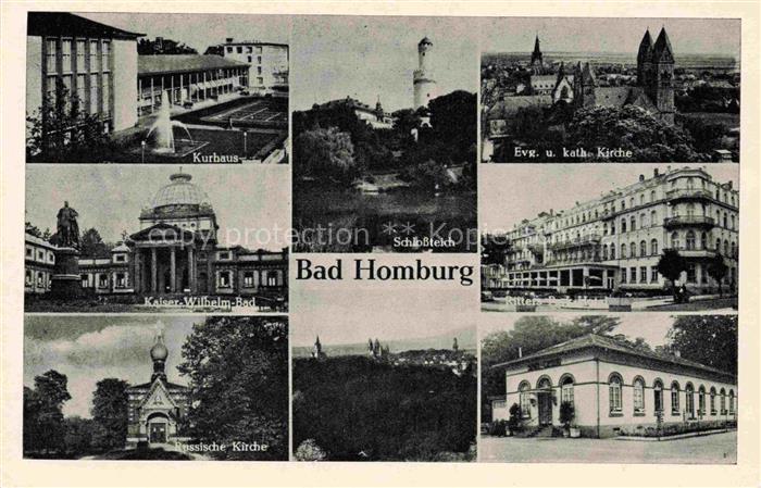 74120869 BAD HOMBURG von der Hoehe Hessen Kurhus Kaiser Wilhelm Bad Russ Kirche Schlossteich Ev und kath Kirche Ritters Park Hotel postalisch nicht gelaufen Erhaltung siehe scans [WerneD78] KatCode: 11110006434001