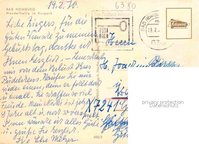 72897029 alte Postkarte Bad Homburg Wandelhalle Kurpark postalisch gelaufen Erhaltung siehe scans [KathaD81] KatCode: 11110006434001