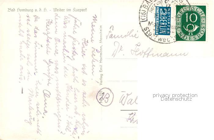 73804288 alte Postkarte Bad Homburg Weiher im Kurpark postalisch gelaufen Erhaltung siehe scans [WerneD78] KatCode: 11110006434001