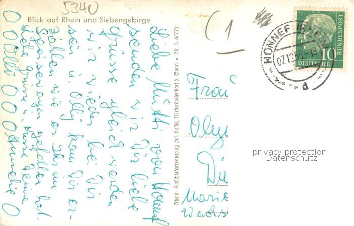 73690338 alte Postkarte Bad Honnef Blick auf Rhein und Siebengebirge postalisch gelaufen Erhaltung siehe scans [LiesaD40] KatCode: 11110005382008