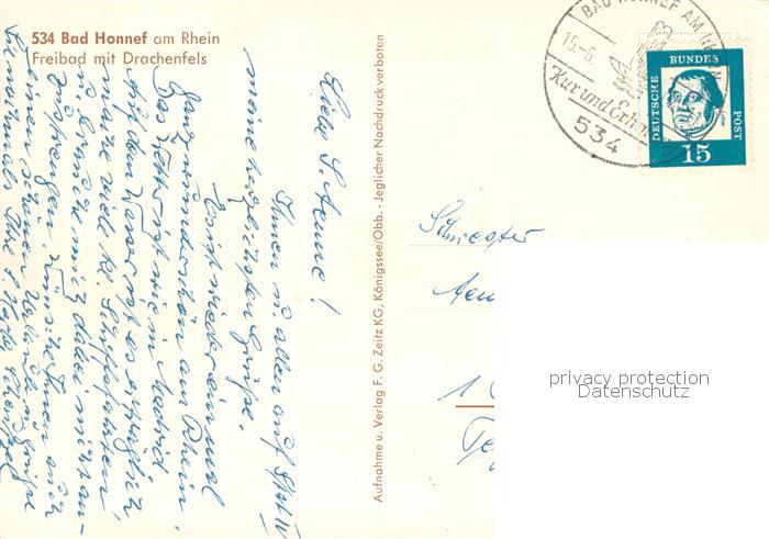 73761956 alte Postkarte Bad Honnef Freibad mit Drachenfels postalisch gelaufen Erhaltung siehe scans [FriedD77] KatCode: 11110005382008