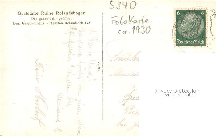 73693532 alte Postkarte Bad Honnef Gaststaette Ruine Rolandsbogen Siebengbirge postalisch gelaufen Erhaltung siehe scans [LiesaD40] KatCode: 11110005382008