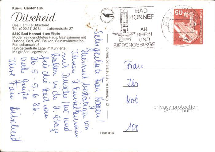 72012207 alte Postkarte Bad Honnef Kur Gaestehaus Ditscheid postalisch gelaufen Erhaltung siehe scans KatCode: 11110005382008