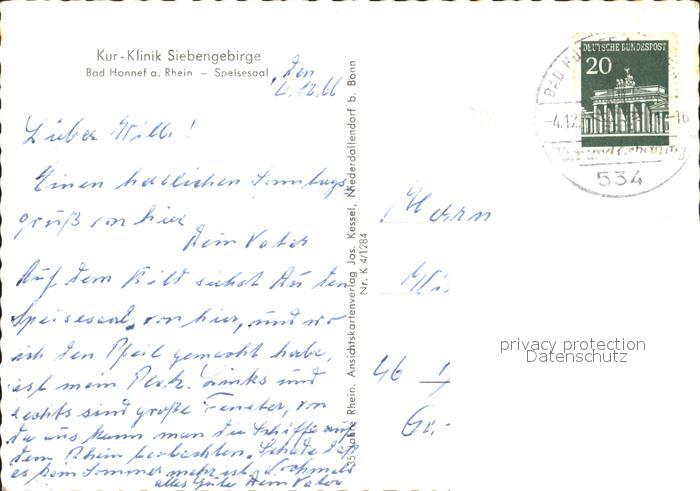72174889 alte Postkarte Bad Honnef Kur-Klinik Siebengebirge Restaurant postalisch gelaufen Erhaltung siehe scans KatCode: 11110005382008