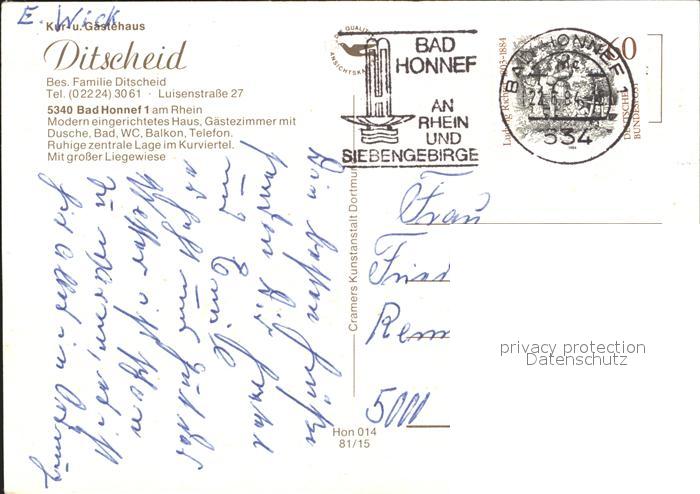 72276917 alte Postkarte Bad Honnef Kur- und Gaestehaus Ditscheid postalisch gelaufen Erhaltung siehe scans KatCode: 11110005382008