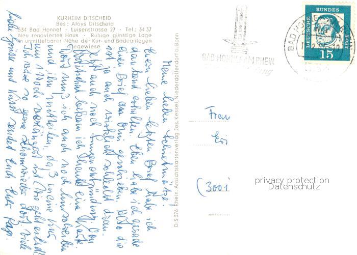 73761854 alte Postkarte Bad Honnef Kurheim Ditscheid postalisch gelaufen Erhaltung siehe scans [FriedD77] KatCode: 11110005382008