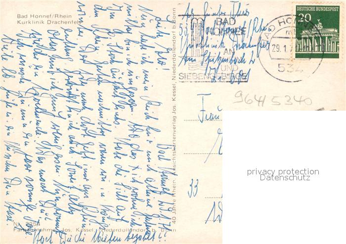 73081046 alte Postkarte Bad Honnef Kurklinik Drachenfels postalisch gelaufen Erhaltung siehe scans [FriedD77] KatCode: 11110005382008