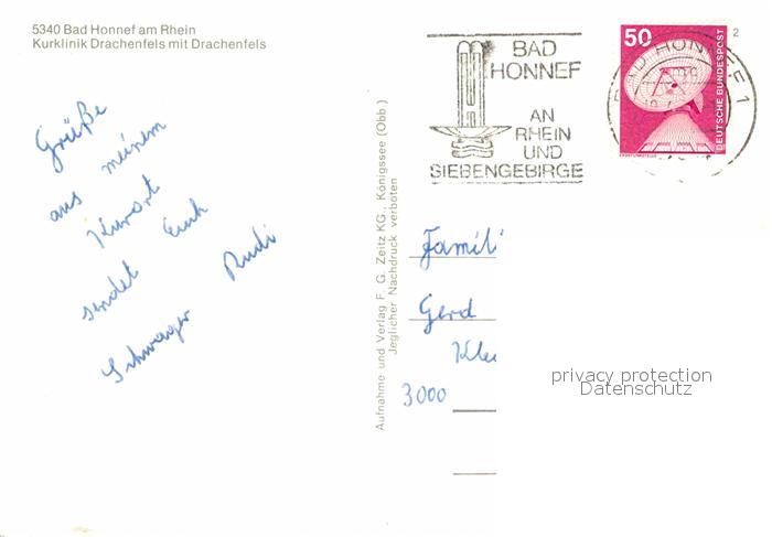 72685678 alte Postkarte Bad Honnef Kurklinik Drachenfels mit Drachenfels postalisch gelaufen Erhaltung siehe scans [WerneD78] KatCode: 11110005382008