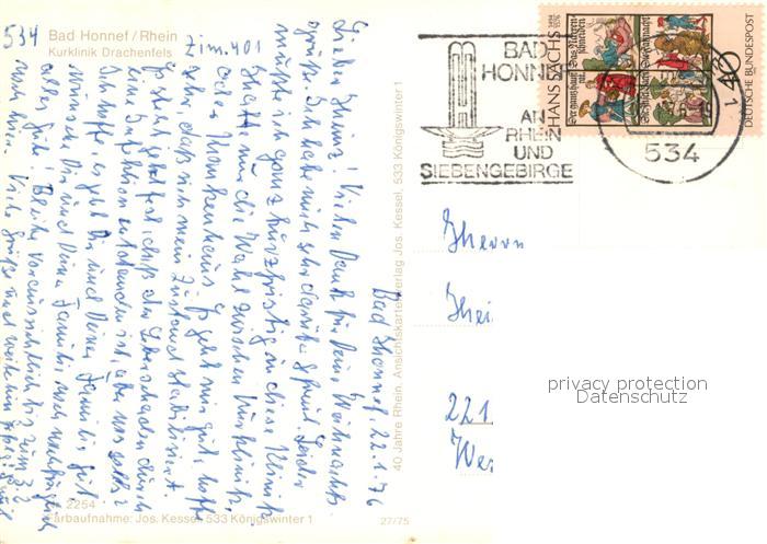 73228455 alte Postkarte Bad Honnef Kurklinik Drachenfels postalisch gelaufen Erhaltung siehe scans [FriedD77] KatCode: 11110005382008