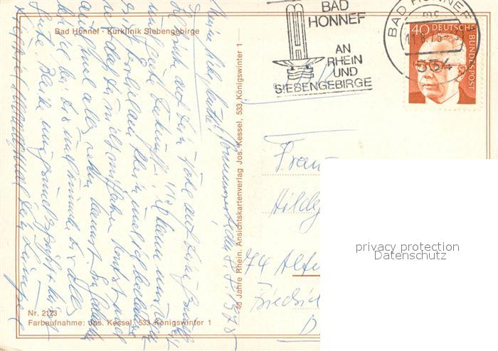 73650154 alte Postkarte Bad Honnef Kurklinik Siebengebirge postalisch gelaufen Erhaltung siehe scans [WerneD78] KatCode: 11110005382008