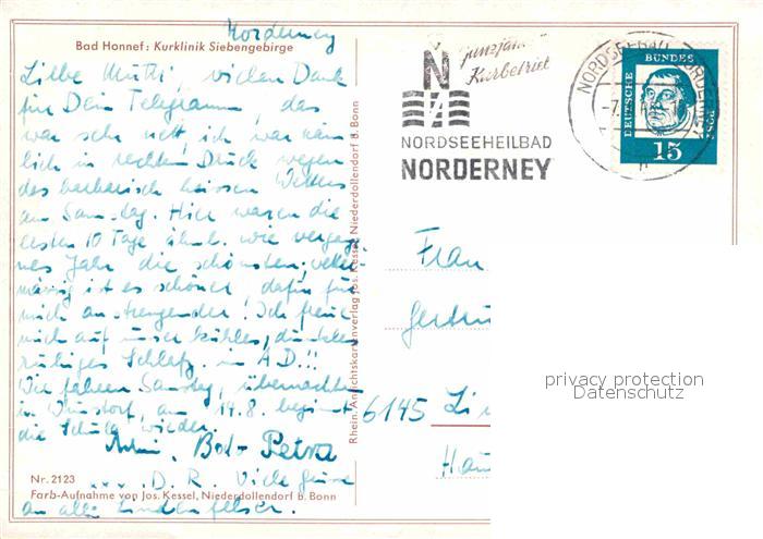 72859971 alte Postkarte Bad Honnef Kurklinik Siebengebirge postalisch gelaufen Erhaltung siehe scans [LiesaD40] KatCode: 11110005382008