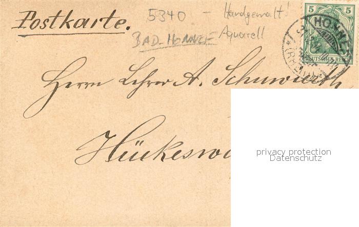 73748721 alte Postkarte Bad Honnef Panorama Aquarell postalisch gelaufen Erhaltung siehe scans [WerneD78] KatCode: 11110005382008