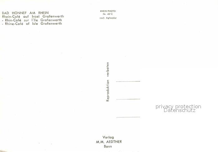 72895270 Bad Honnef Rhein Cafe aufInsel Grafenwerth postalisch nicht gelaufen Erhaltung siehe scans [AndreD76] KatCode: 11110005382008