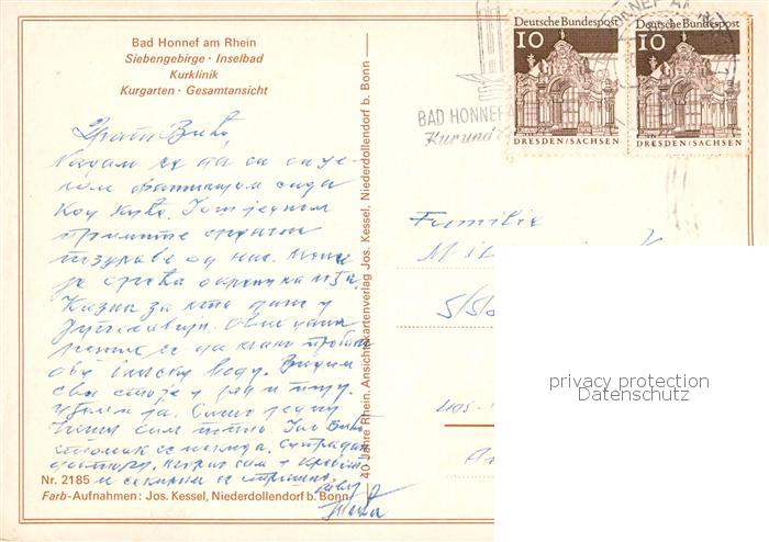 73814923 alte Postkarte Bad Honnef Rheinpartien Kurklinik Kurgarten Panorama postalisch gelaufen Erhaltung siehe scans [WerneD78] KatCode: 11110005382008