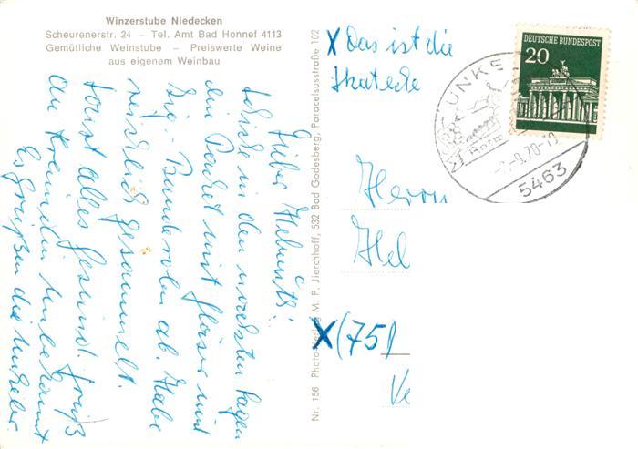 73878645 alte Postkarte Bad Honnef Winzerstube Niedecken Gastraeume Partie am Wasser postalisch gelaufen Erhaltung siehe scans [FriedD77] KatCode: 11110005382008
