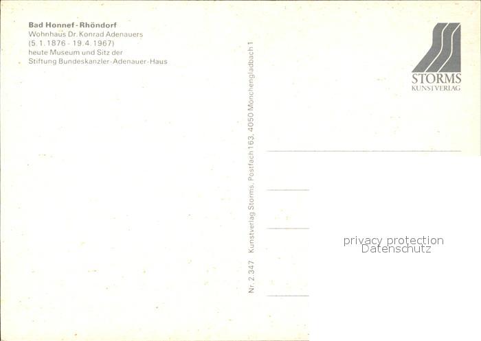 72549793 Bad Honnef Wohnhaus Dr. Adenauer Konrad postalisch nicht gelaufen Erhaltung siehe scans [AndreD76] KatCode: 11110005382008
