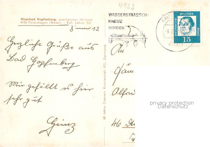 73828964 alte Postkarte Bad Hopfenberg Moorbad postalisch gelaufen Erhaltung siehe scans [FriedD77] KatCode: 11110005770028