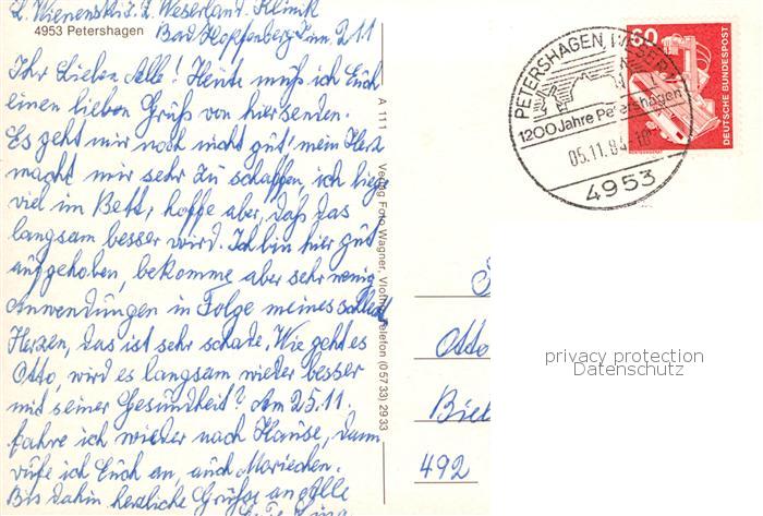 73828963 alte Postkarte Bad Hopfenberg Panorama Blick von Dachterrasse Schloss Petershagen Weserkurklinik Restaurant postalisch gelaufen Erhaltung siehe scans [FriedD77] KatCode: 11110005770028