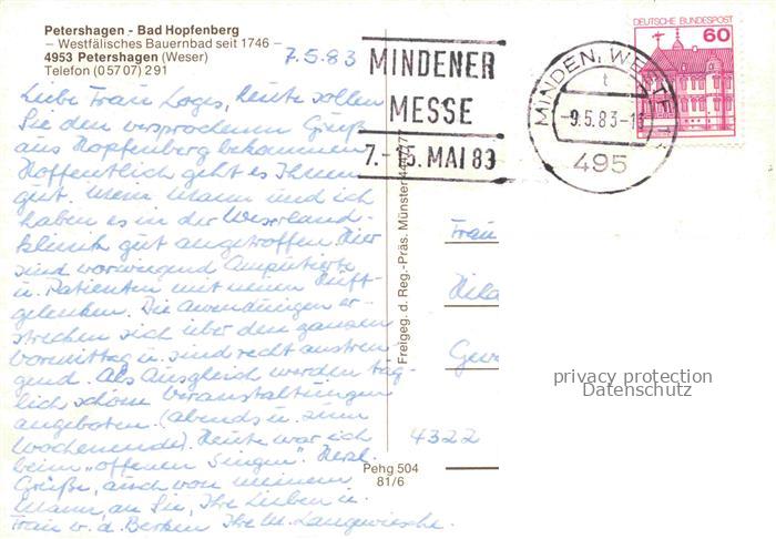 74156915 alte Postkarte Bad Hopfenberg Petershagen NRW Bauernbad Kurhotel Weser Flachland Felder Park postalisch gelaufen Fliegeraufnahme Erhaltung siehe scans [Karloger] KatCode: 11110005770028