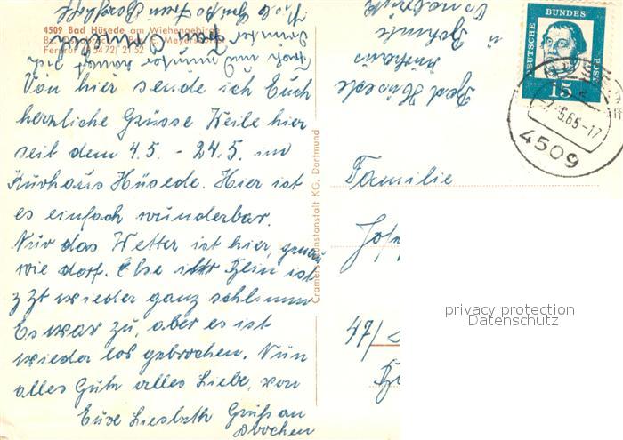 73646615 alte Postkarte Bad Huesede Hotel Restaurant Liegewiese postalisch gelaufen Erhaltung siehe scans [FriedD77] KatCode: 11110003459003