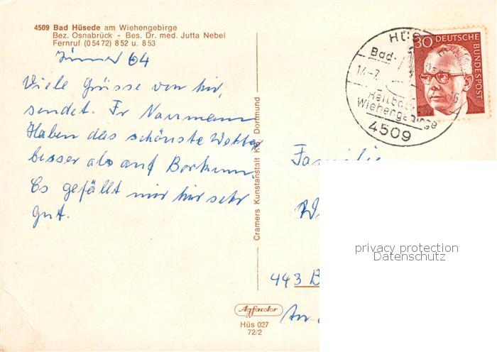 73835871 alte Postkarte Bad Huesede Kurhaus Trinkbrunnen Terrasse Park postalisch gelaufen Erhaltung siehe scans [WerneD78] KatCode: 11110003459003