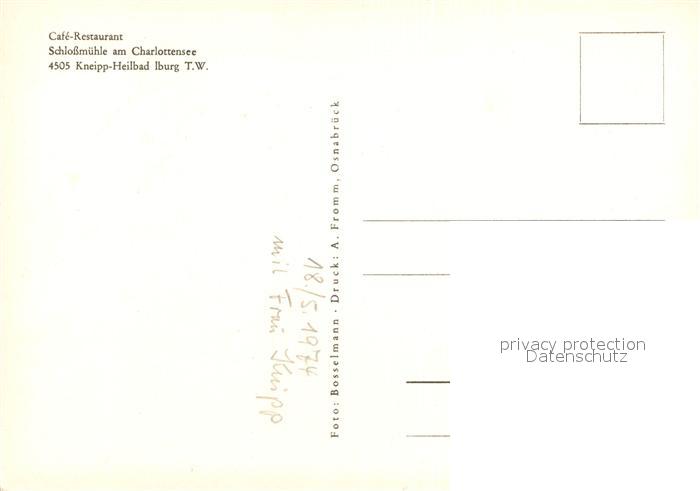 73574247 Bad Iburg Cafe Restaurant Schlossmuehle am Charlottensee postalisch nicht gelaufen Erhaltung siehe scans [FriedD77] KatCode: 11110003459004