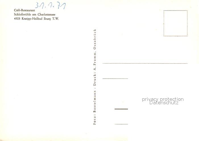 72969746 Bad Iburg Cafe Restaurant Schlossmuehle am Charlottensee postalisch nicht gelaufen Erhaltung siehe scans [LiesaD40] KatCode: 11110003459004