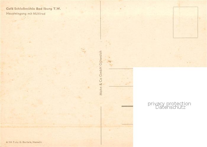 73841141 Bad Iburg Cafe Schlossmuehle Haupteingang mit Muehlrad postalisch nicht gelaufen Erhaltung siehe scans [WerneD78] KatCode: 11110003459004