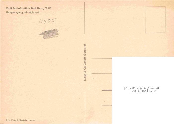 72868728 Bad Iburg Cafe Schlossmuehle Haupteingang mit Muehlrad postalisch nicht gelaufen Erhaltung siehe scans [FriedD77] KatCode: 11110003459004