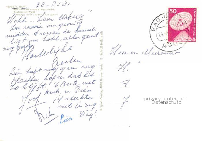 72917010 alte Postkarte Bad Iburg Doerenberg Klinik Schloss postalisch gelaufen Erhaltung siehe scans [NatalD47] KatCode: 11110003459004