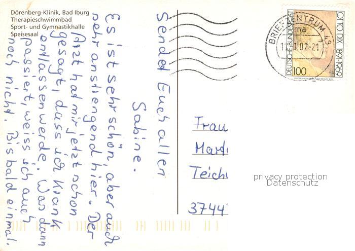 73081934 alte Postkarte Bad Iburg Doerenberg Klinik Therapieschwimmbad Sporthalle Gymnastik Speisesaal postalisch gelaufen Erhaltung siehe scans [FriedD77] KatCode: 11110003459004