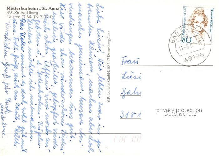 73321989 alte Postkarte Bad Iburg Fliegeraufnahme Muetterkurheim Sankt Anna postalisch gelaufen Erhaltung siehe scans [KathaD81] KatCode: 11110003459004