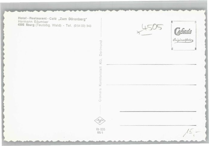 40690023 Bad Iburg Hotel Restaurant Zum Dörenberg KatCode 11110003459004