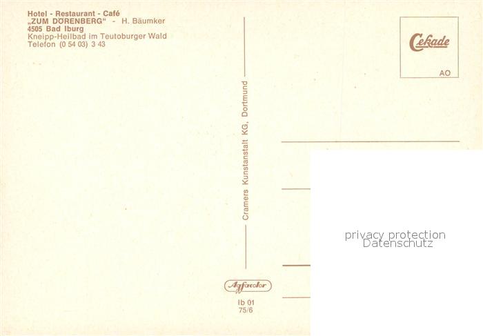 73542030 Bad Iburg Hotel Restaurant Zum Doerenberg Fliegeraufnahme postalisch nicht gelaufen Erhaltung siehe scans [WerneD78] KatCode: 11110003459004