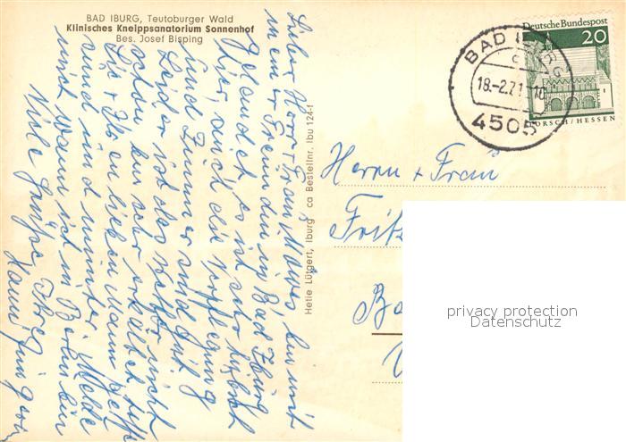 73149170 alte Postkarte Bad Iburg Klinisches Kneippsanatorium Sonnenhof postalisch gelaufen Erhaltung siehe scans [FriedD77] KatCode: 11110003459004