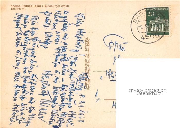73668137 alte Postkarte Bad Iburg Kneipp Heilbad Fliegeraufnahme postalisch gelaufen Erhaltung siehe scans [WerneD78] KatCode: 11110003459004