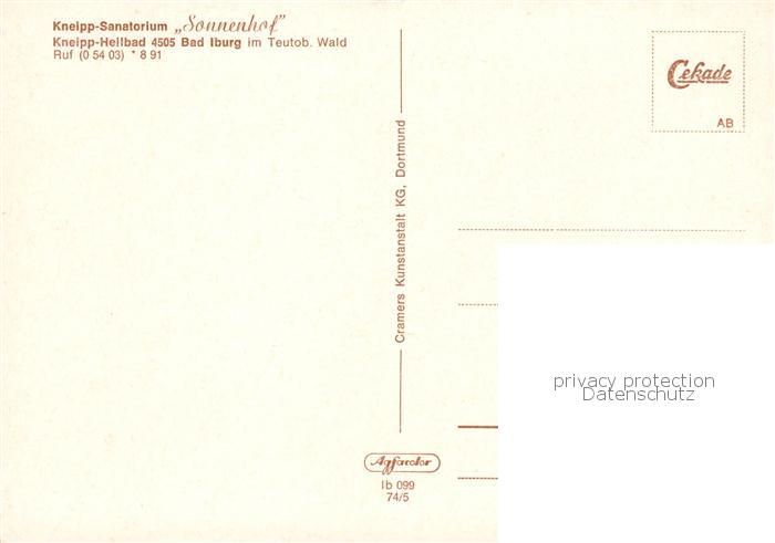 73836514 Bad Iburg Kneipp Sanatorium Sonnenhof postalisch nicht gelaufen Erhaltung siehe scans [WerneD78] KatCode: 11110003459004