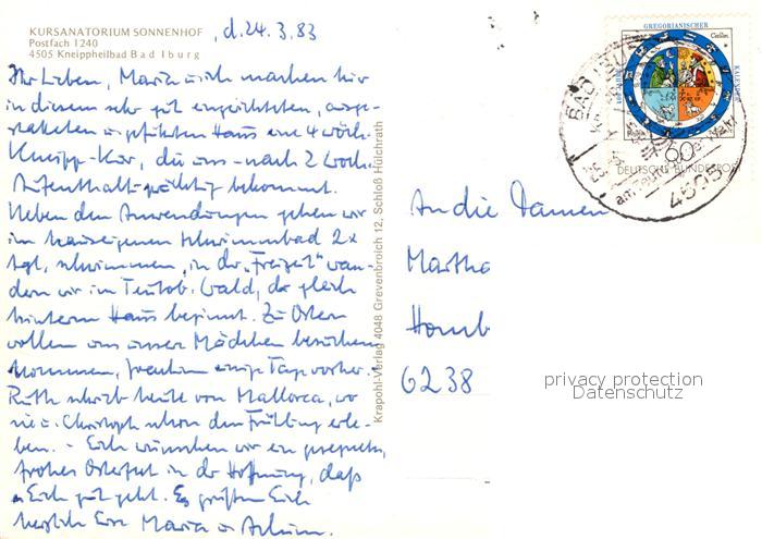 73007673 alte Postkarte Bad Iburg Kursanaorium Sonnenhof postalisch gelaufen Erhaltung siehe scans [WerneD78] KatCode: 11110003459004