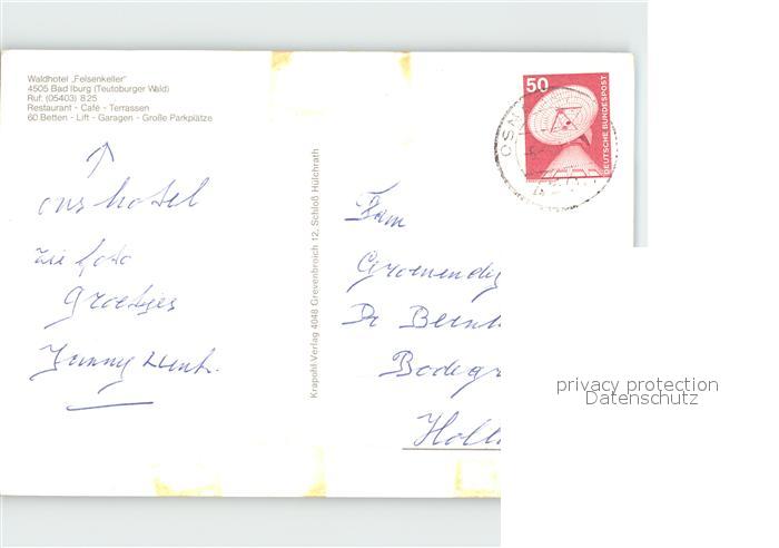 72259149 alte Postkarte Bad Iburg Waldhotel Felsenkeller postalisch gelaufen Erhaltung siehe scans KatCode: 11110003459004