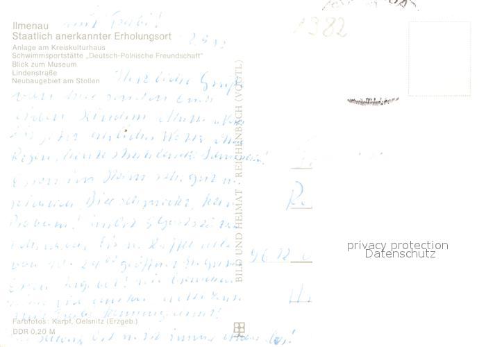 72947279 alte Postkarte Bad Ilmenau Park Kreiskulturhaus Schwimmsportstaette DPF Museum Lindenstr Neubauten am Stollen postalisch gelaufen Erhaltung siehe scans [WerneD78] KatCode: 11110016070029