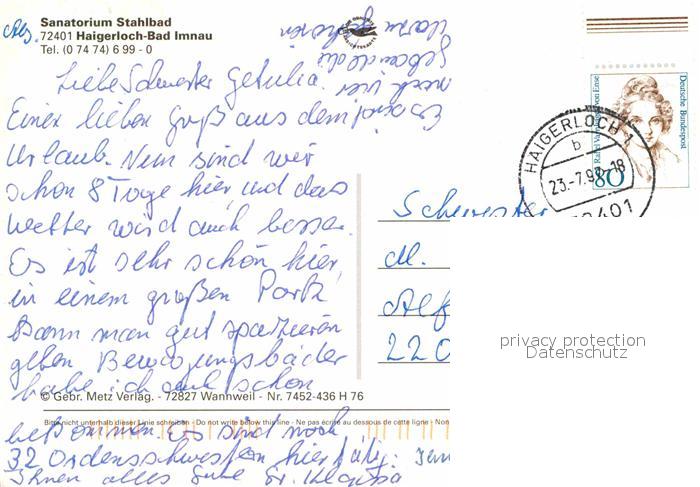72721937 alte Postkarte Bad Imnau Sanatorium Stahlbad postalisch gelaufen Erhaltung siehe scans [LiesaD40] KatCode: 11110008417025