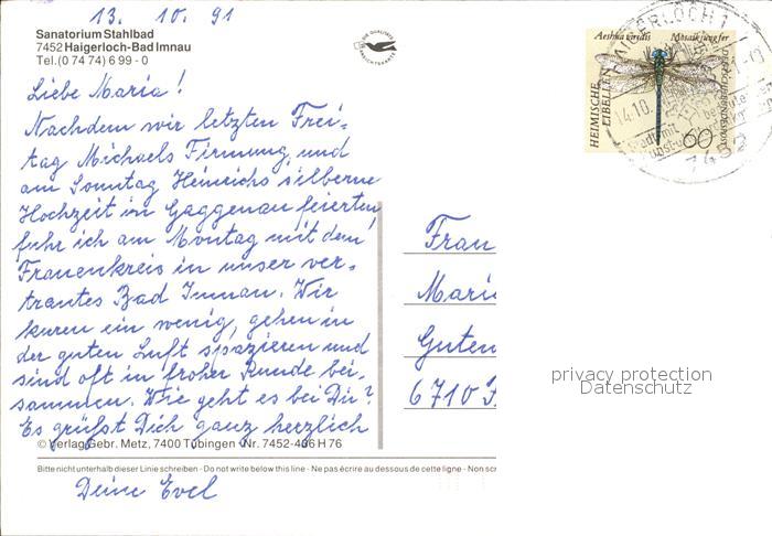 72136811 alte Postkarte Bad Imnau Sanatorium Stahlbad postalisch gelaufen Erhaltung siehe scans KatCode: 11110008417025