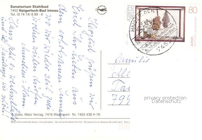 73124263 alte Postkarte Bad Imnau Sanatorium Stahlbad postalisch gelaufen Erhaltung siehe scans [KathaD81] KatCode: 11110008417025