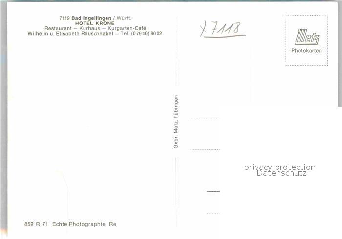 42868919 Bad Ingelfingen Hotel Krone postalisch nicht gelaufen Erhaltung siehe scans [AndreD76] KatCode: 11110008126039