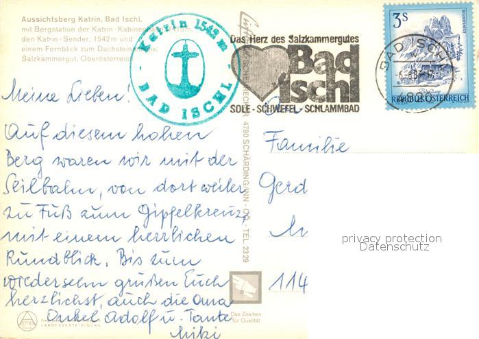 73162320 alte Postkarte Bad Ischl Salzkammergut Bergstation Katrin Aussichtsberg Sender Fernblick Dachsteingebirge Fliegeraufnahme postalisch gelaufen Erhaltung siehe scans [FriedD77] KatCode: 11390315040703