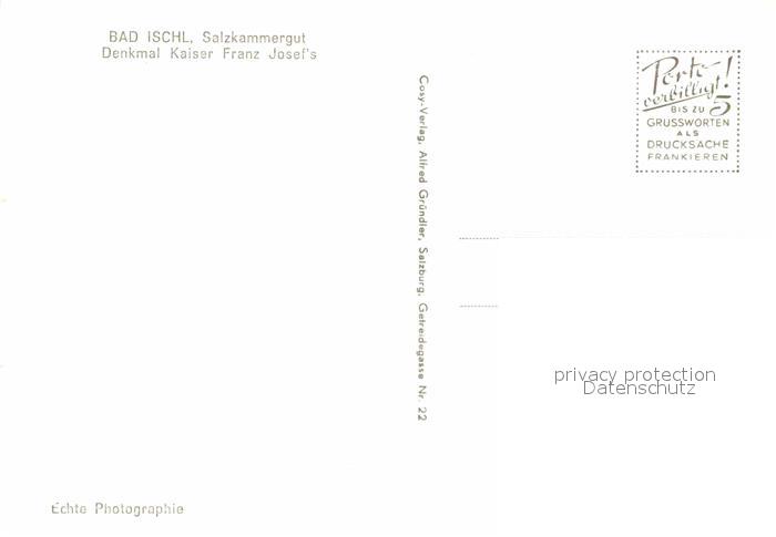 72724123 Bad Ischl Salzkammergut Denkmal Kaiser Franz Josef Statue Hirsch postalisch nicht gelaufen Erhaltung siehe scans [FriedD77] KatCode: 11390315040703