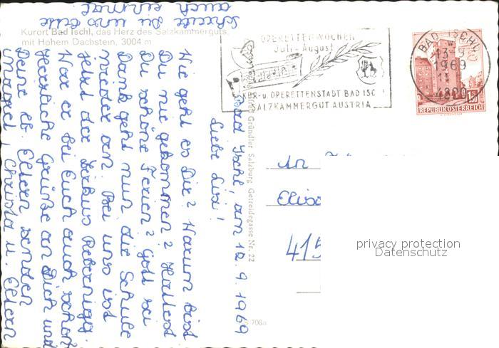 71860025 alte Postkarte Bad Ischl Salzkammergut Hoher Dachstein postalisch gelaufen Erhaltung siehe scans KatCode: 11390315040703